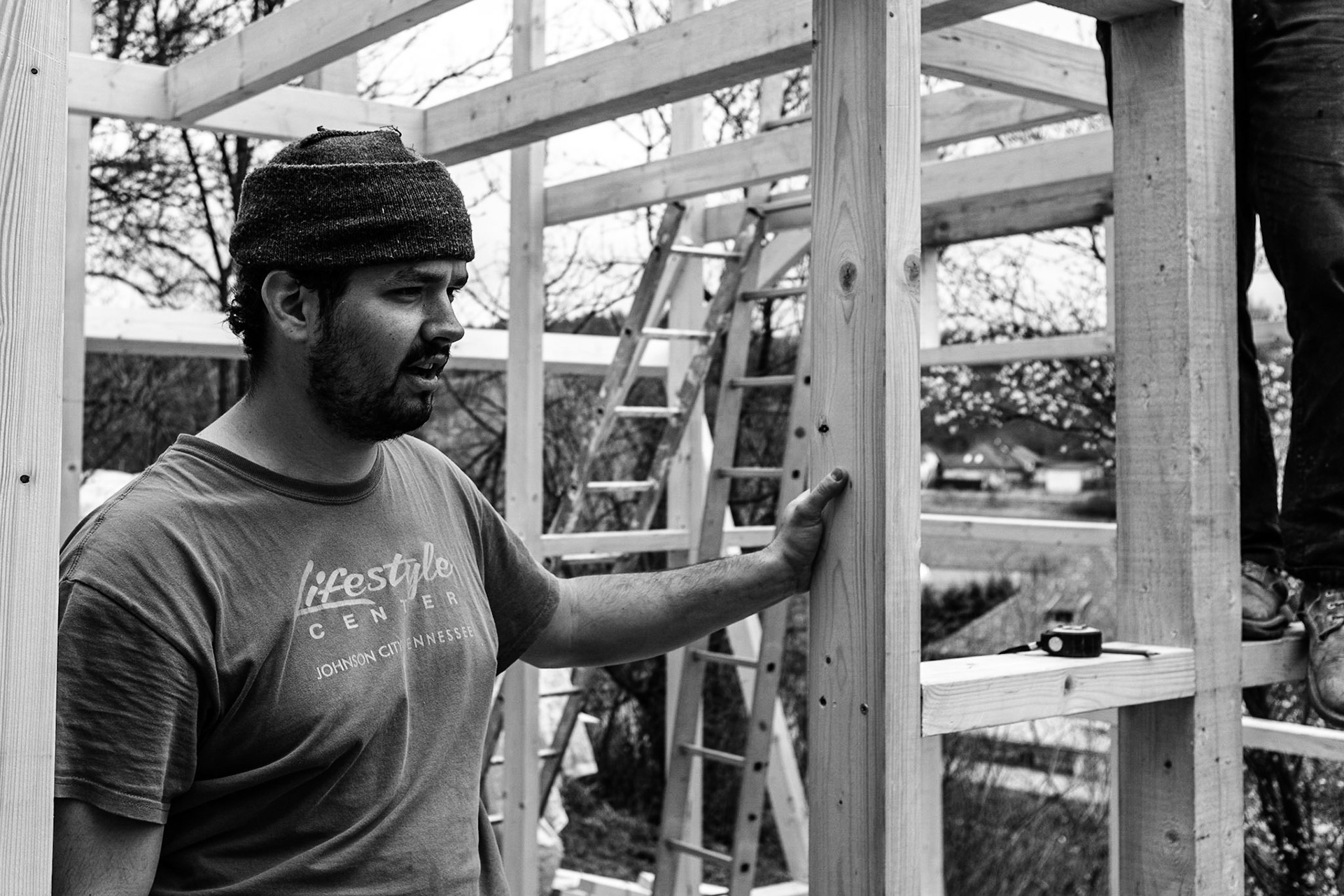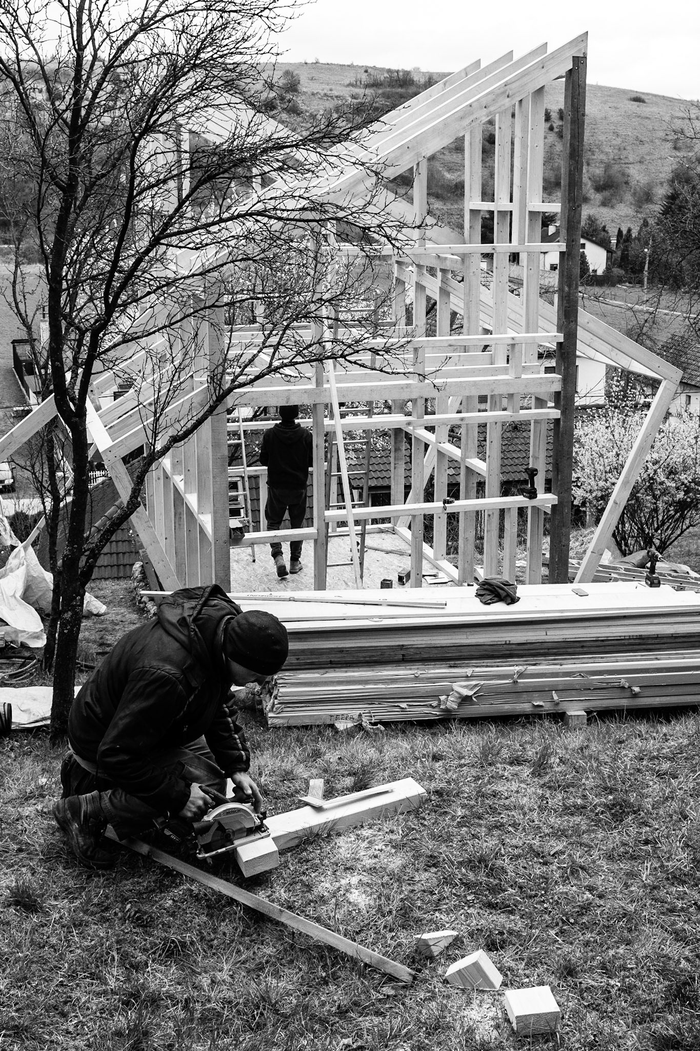 My friend Siska is an architect focusing on wooden structures. I helped him to build this one. I wanted to capture not only the process of construction but also people who constructed it. I like to have humans as the center of my photography with a construction site in the background. We often acknowledge architecture or we are interested in people or communities living in certain environments. But we never acknowledge people who work on these construction sites.